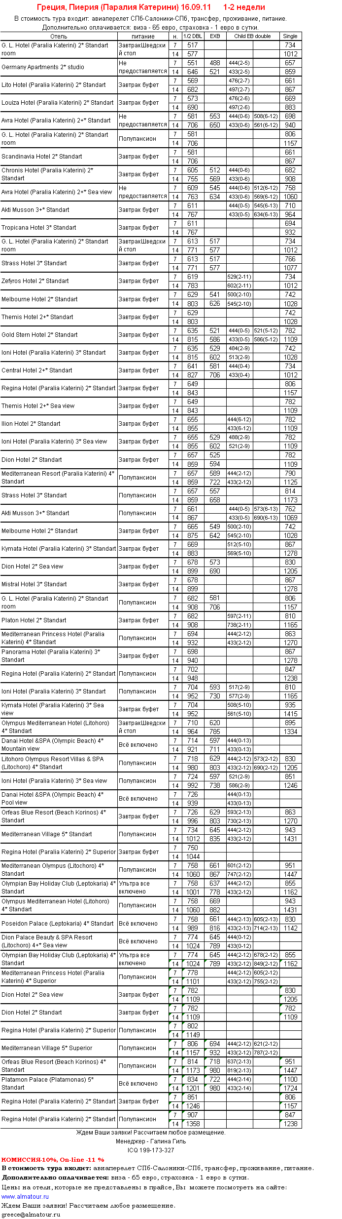 05 Сен 2011 14:24:43 ГРЕЦИЯ, Пиерия (Паралия Катерини) 16.09.11, 1-2 недели от фирмы АЛМА ТУР