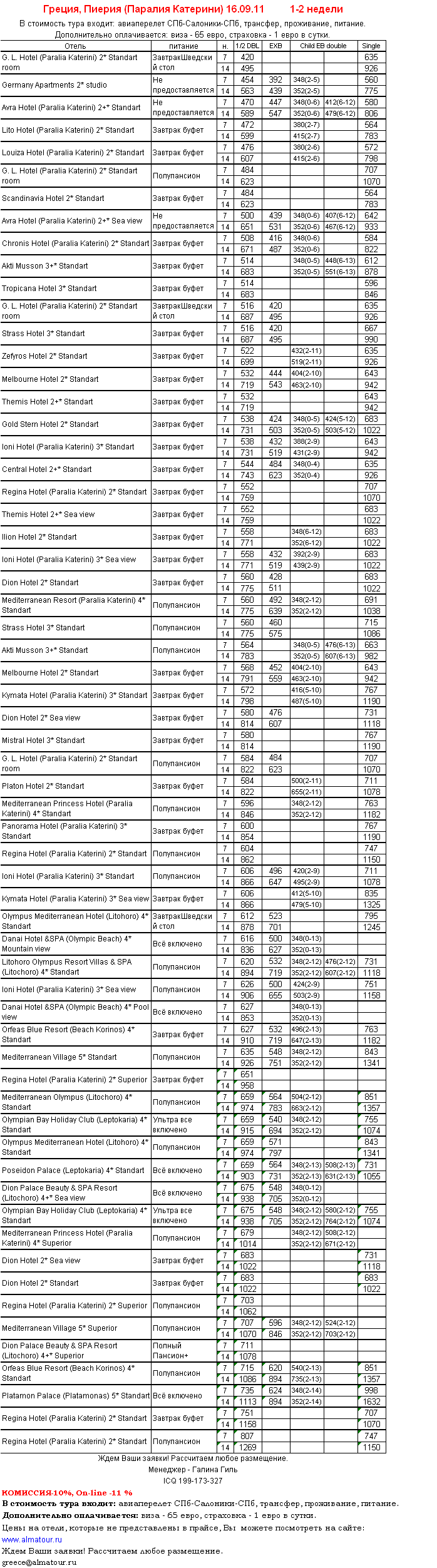 06 Сен 2011 15:01:36 ГРЕЦИЯ, Пиерия (Паралия Катерини) 16.09 на 1-2 недели от фирмы АЛМА ТУР