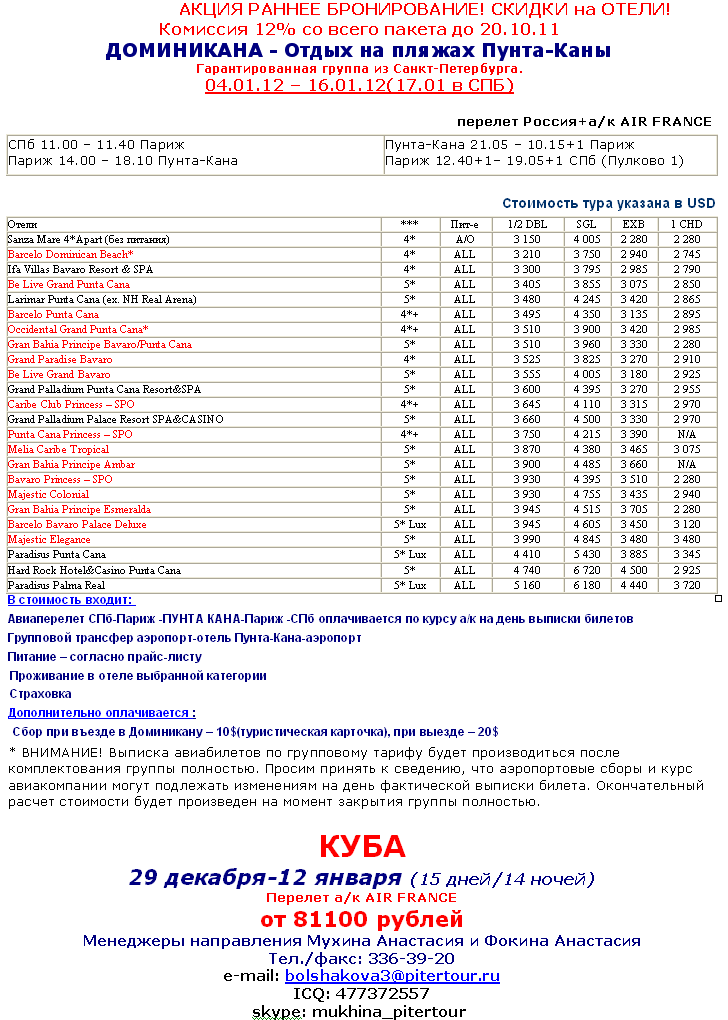 12 Сен 2011 10:12:06 ДОМИНИКАНА гарантированная группа на НОВОГОДНИЕ КАНИКУЛЫ 4-16 января 2012 г. от 93 тыс.руб. от фирмы ПИТЕРТУР