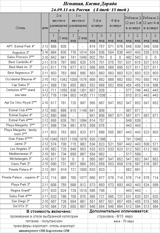 19 Сен 2011 15:01:38 ИСПАНИЯ, Коста Дорада 24.09.11 а/к Россия ( 8 дней/ 15 дней ) от фирмы ПРИМА
