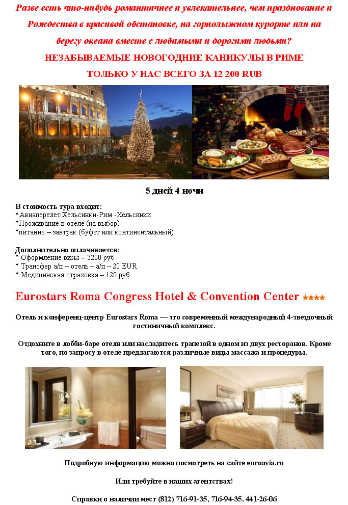 ИТАЛИЯ - РИМ 5дн/4н - Eurostars Roma 4* на НОВОГОДНИЕ КАНИКУЛЫ от фирмы RTT-INTERNATIONAL |