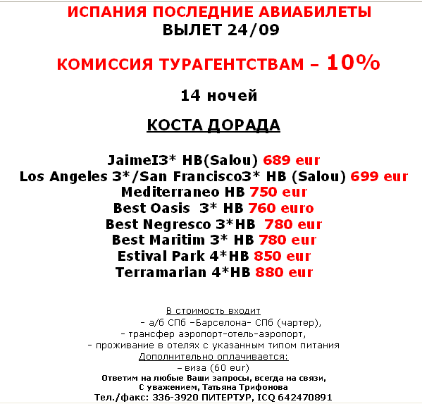 20 Сен 2011 18:00:40 ИСПАНИЯ - КОСТА ДОРАДА 24.09 на 14н, ПОСЛЕДНИЕ МЕСТА от фирмы ПИТЕРТУР