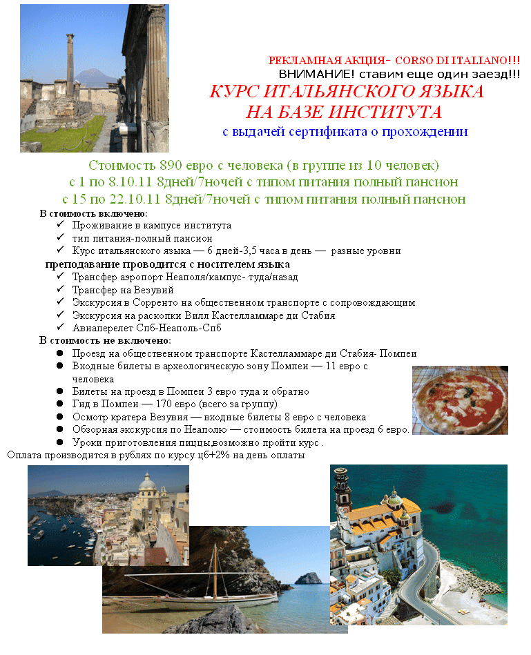 20 Сен 2011 17:00:36 ИТАЛИЯ. ВПЕРВЫЕ!!! КУРС ИТАЛЬЯНСКОГО ЯЗЫКА В СОЛНЕЧНОЙ ИТАЛИИ!!! от фирмы ОЛЛТУРС