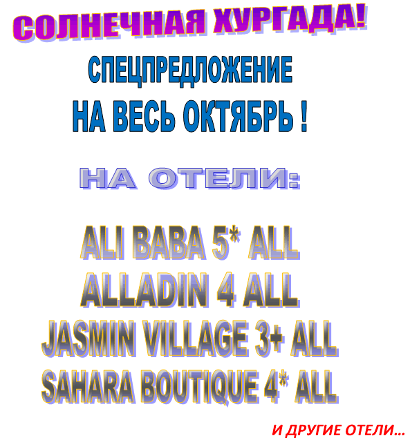 20 Сен 2011 15:39:06 ЕГИПЕТ - ХУРГАДА! СКИДКИ! ALI BABA, ALLADIN, JASMIN, SAHARA BOUTIQUE... от фирмы TRIVE ТУР
