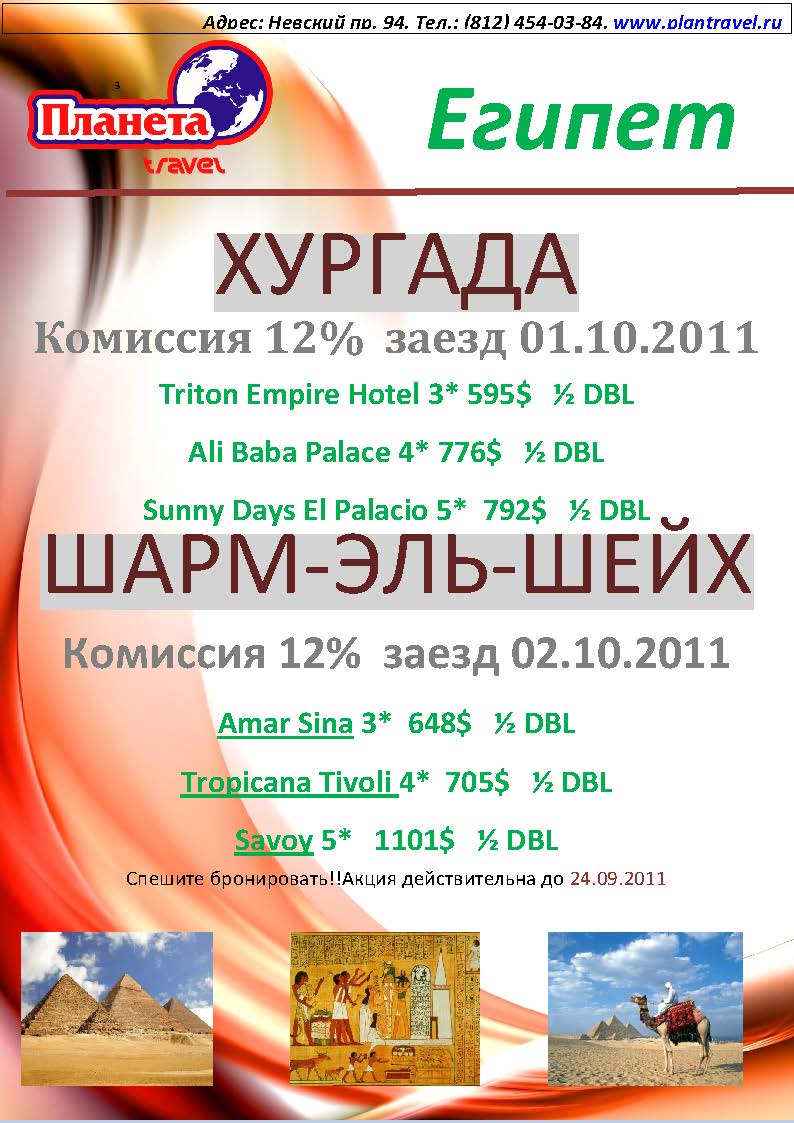 21 Сен 2011 11:43:53 ЕГИПЕТ от 595$ от фирмы ПЛАНЕТА TRAVEL