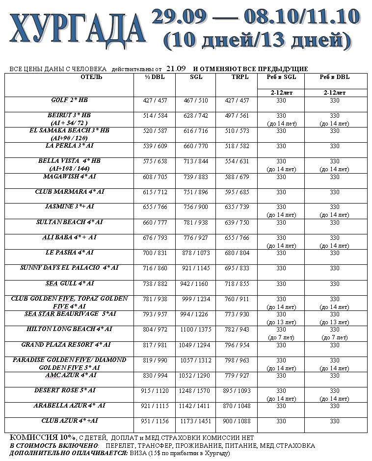 22 Сен 2011 12:09:01 ЕГИПЕТ - ХУРГАДА 29.09-08.10/11.10 (10/13 дней) от фирмы ФЛАМИНГО