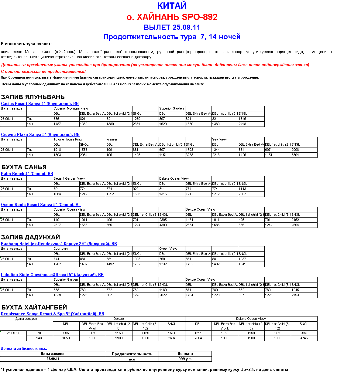 КИТАЙ, о.ХАЙНАНЬ - заезд 25.09 - НОВЫЕ СКИДКИ - КОМИССИЯ 18% - от 701 у.е. вылет из Москвы от фирмы ЮЖНЫЙ КРЕСТ |