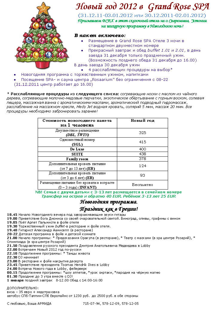 26 Сен 2011 14:53:52 ЭСТОНИЯ Новый год в Гранд Роуз СПА (о.Сааремаа) от фирмы АРМИДА ПЛЮС