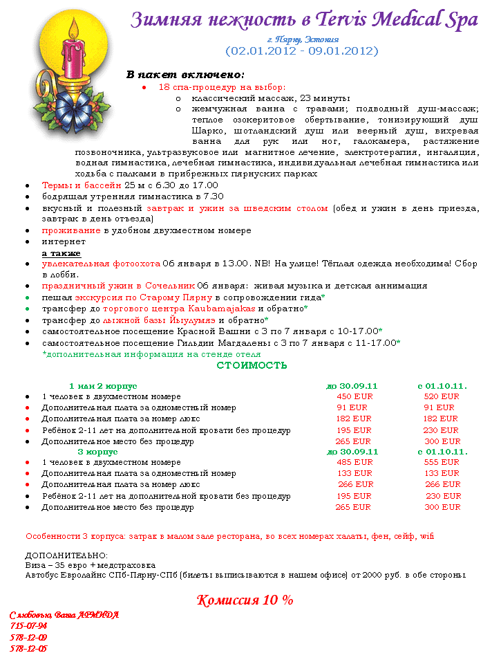 26 Сен 2011 15:11:49 ЭСТОНИЯ Рождественская нежность в Тервис Медикал СПА от фирмы АРМИДА ПЛЮС