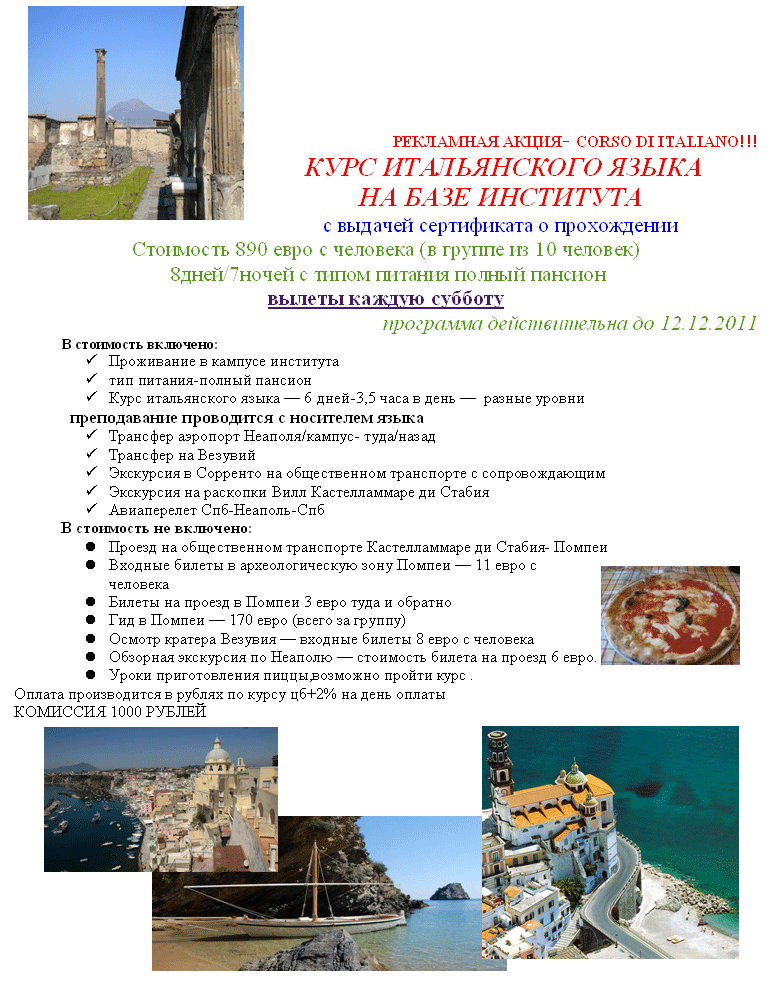 05 Окт 2011 17:02:41 ИТАЛИЯ. Курсы итальянского языка в регионе Кампания от фирмы ОЛЛТУРС