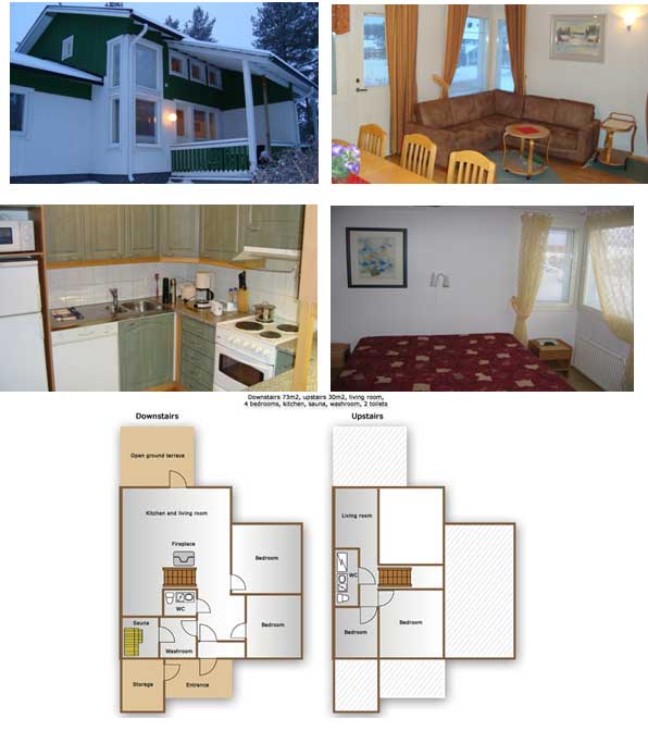 спальни, гостиная (в гостиной диван) с камином, сауна, полностью
