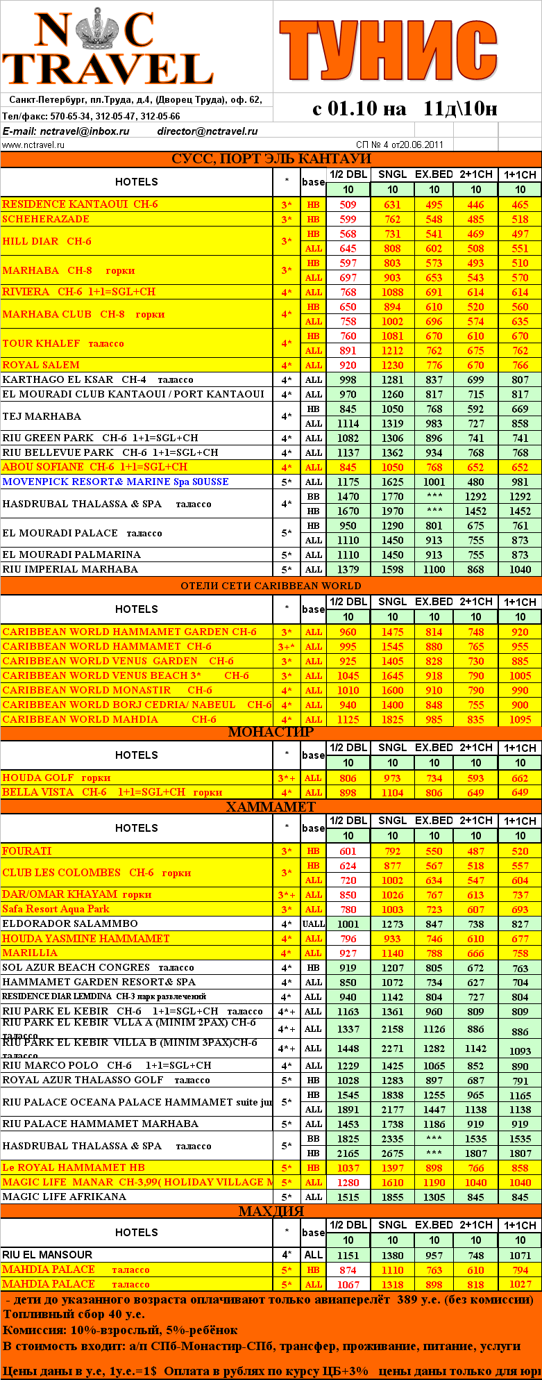 14 Окт 2011 16:13:11 ТУНИС с 01.10 на 11д10н - от фирмы NC TRAVEL