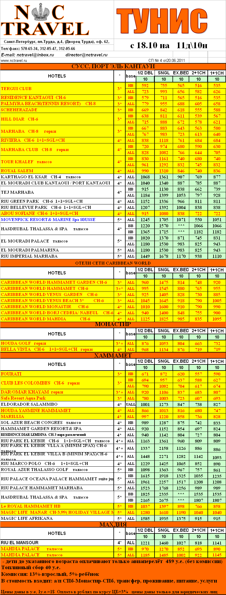 17 Окт 2011 14:32:06 ТУНИС НИЗКИЕ ЦЕНЫ с 18.10 на 10 ночей! КОМИССИЯ -13%! от фирмы NC TRAVEL
