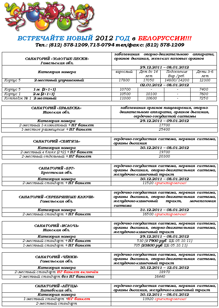 19 Окт 2011 13:10:52 БЕЛОРУССИЯ - Новогодние каникулы в санаториях Беларуси от фирмы АРМИДА ПЛЮС