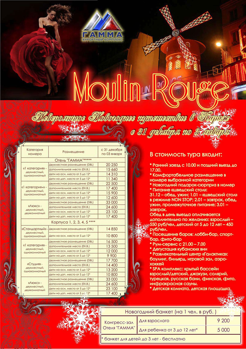 в сердце Франции – фееричный Мулен Руж! В программе: