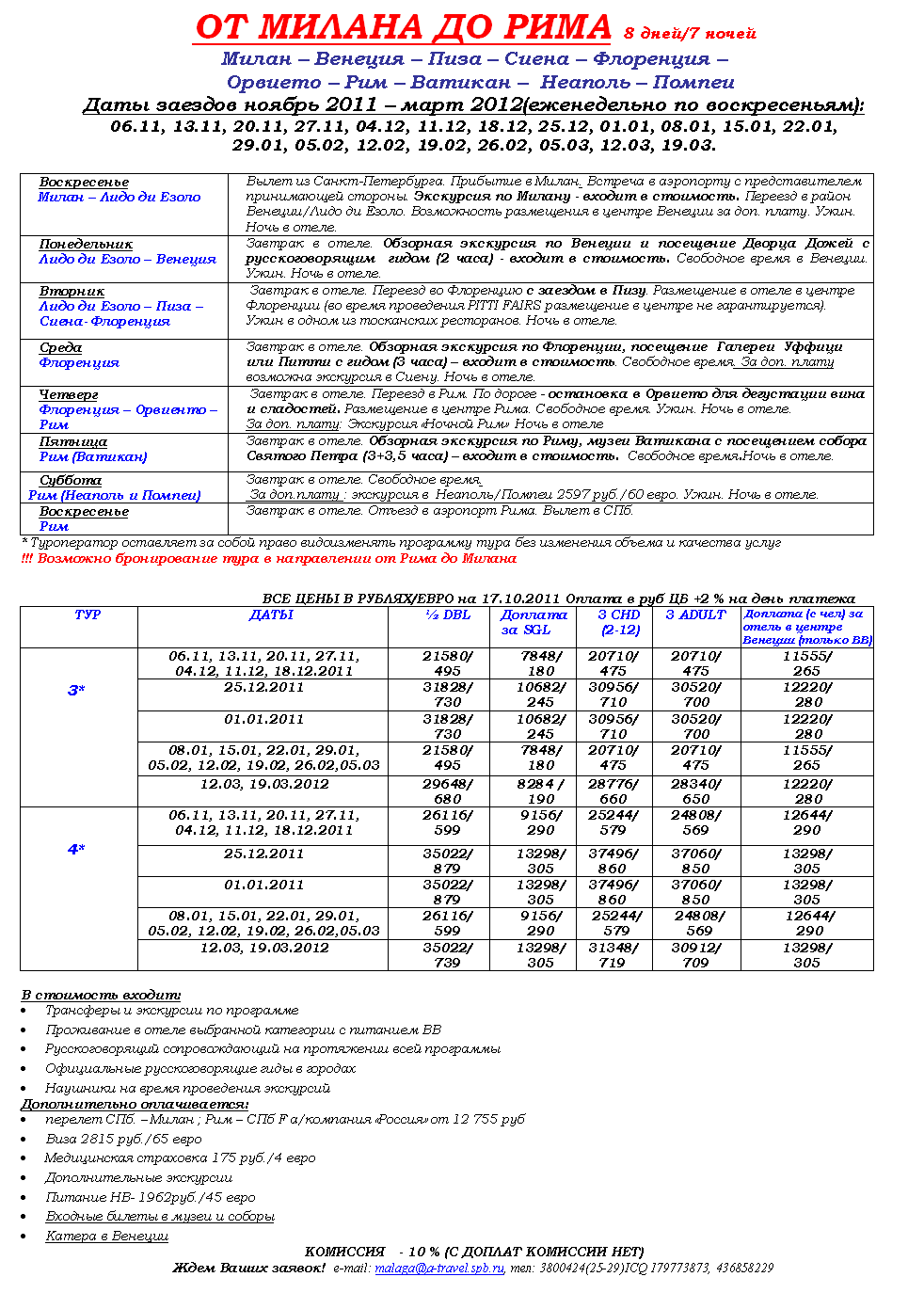 21 Окт 2011 11:23:52 ИТАЛИЯ. ОТ МИЛАНА ДО РИМА 8 дней/7 ночей от фирмы АКАДЕМИЯ