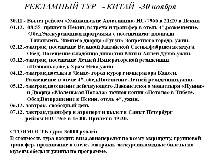 25 Окт 2011 11:02:13 РЕКЛАМНЫЙ ТУР в КИТАЙ 30.11. от фирмы ИВОЛГА
