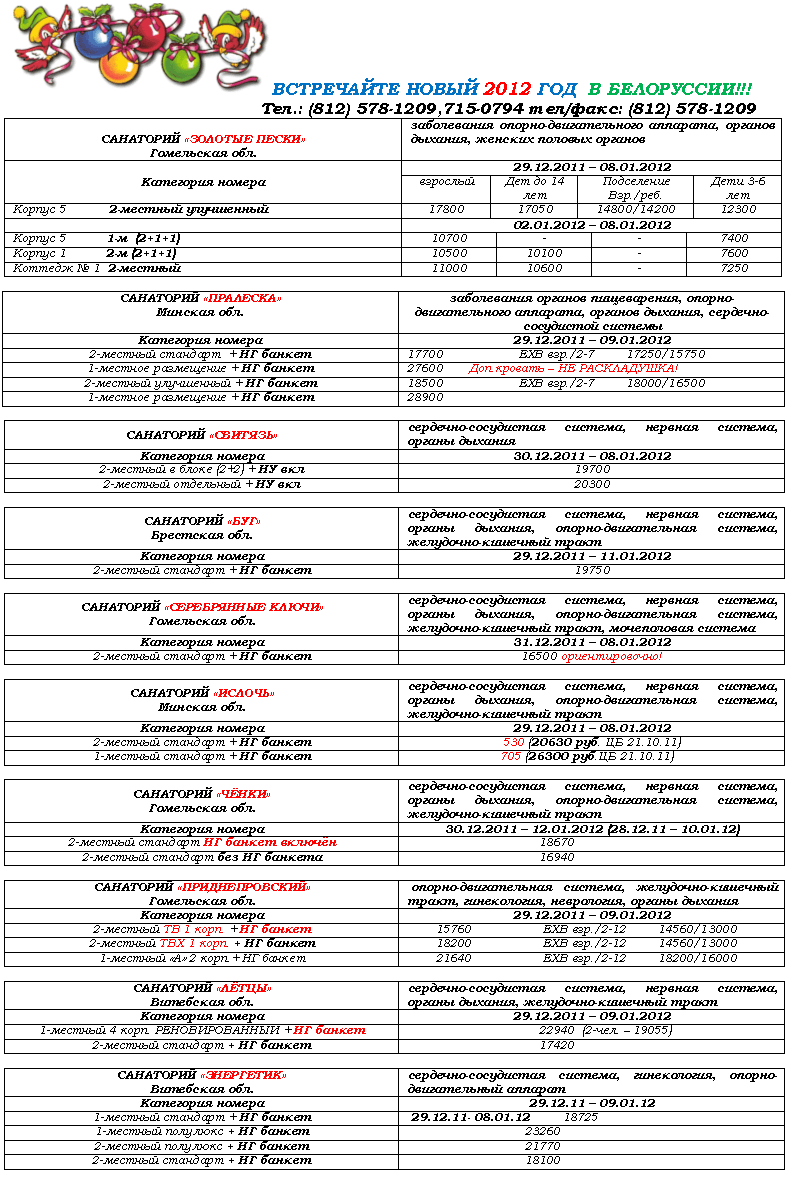 25 Окт 2011 13:50:34 БЕЛОРУССИЯ - САНАТОРИИ на НОВЫЙ ГОД от фирмы АРМИДА ПЛЮС