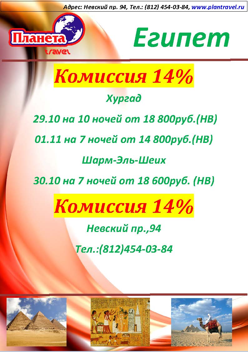 27 Окт 2011 16:18:11 ЕГИПЕТ. Комиссия 14% на туры в Египет от фирмы ПЛАНЕТА TRAVEL