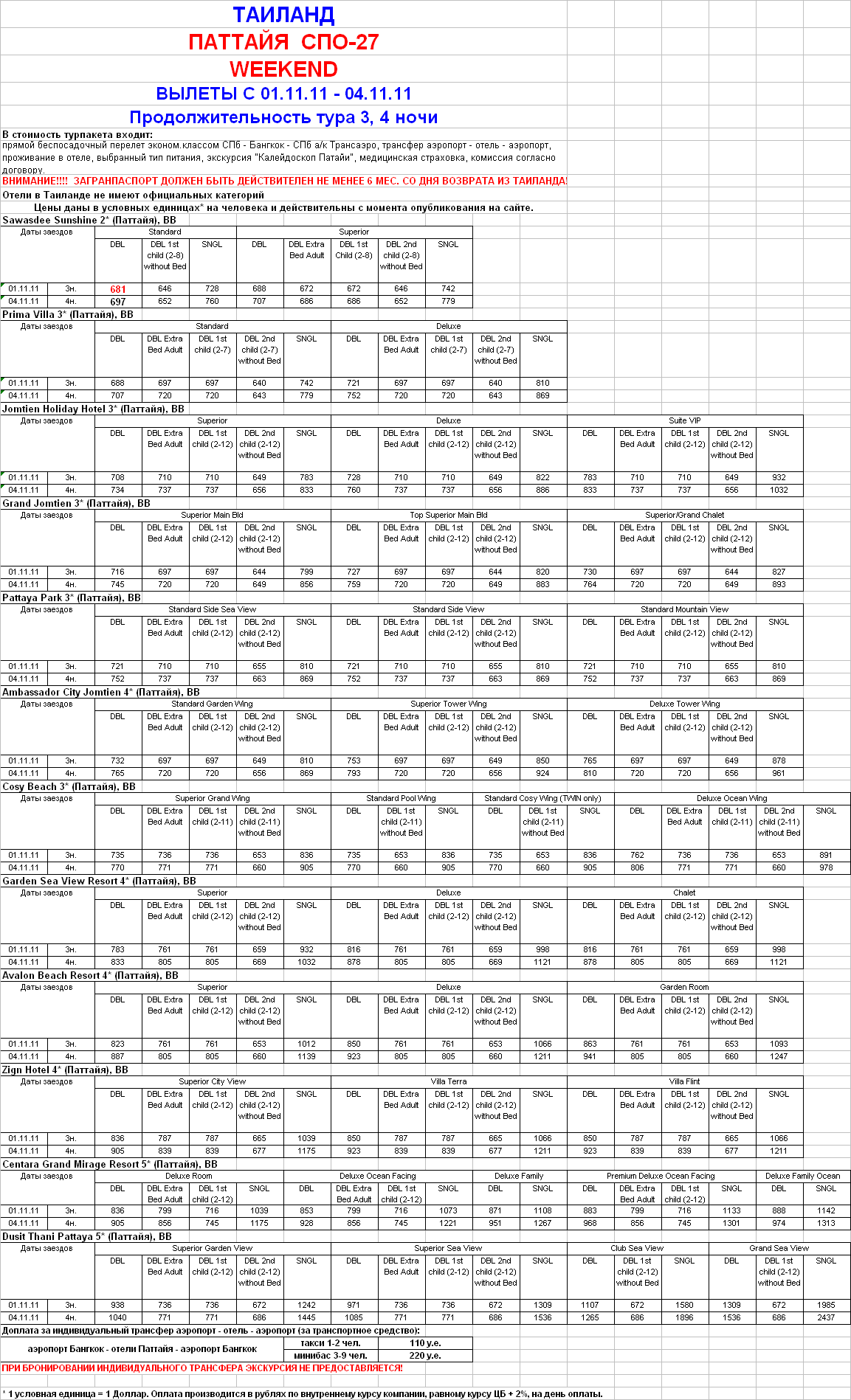 ТАИЛАНД, ПАТТАЙЯ - вылеты 01.11,04.11- WEEKEND от 681 у.е. от фирмы ЮЖНЫЙ КРЕСТ |