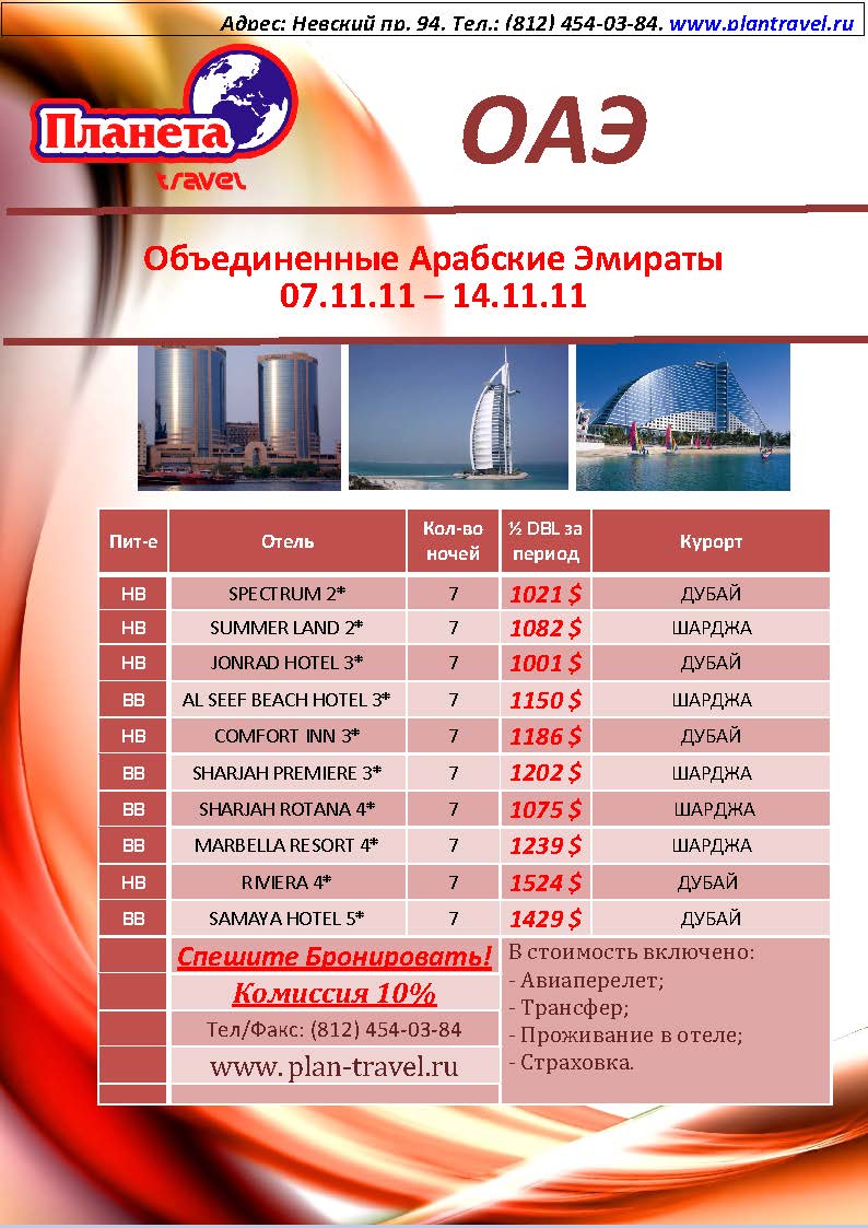 31 Окт 2011 12:22:34 ОАЭ из Спб от 1021$ а/к Emirates Airlines от фирмы ПЛАНЕТА TRAVEL