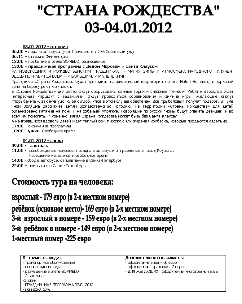 31 Окт 2011 17:02:18 ФИНЛЯНДИЯ. "СТРАНА РОЖДЕСТВА" 03-04.01.2012 от фирмы ТЕТРА СПБ