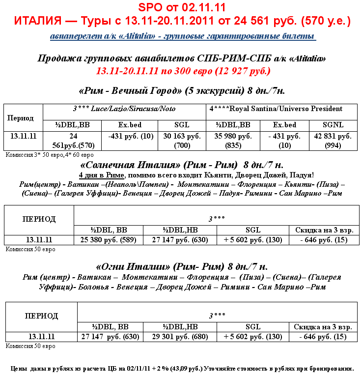 02 Ноя 2011 14:03:08 ИТАЛИЯ 13.11 SPO от фирмы АРТ-ТРЕВЕЛ