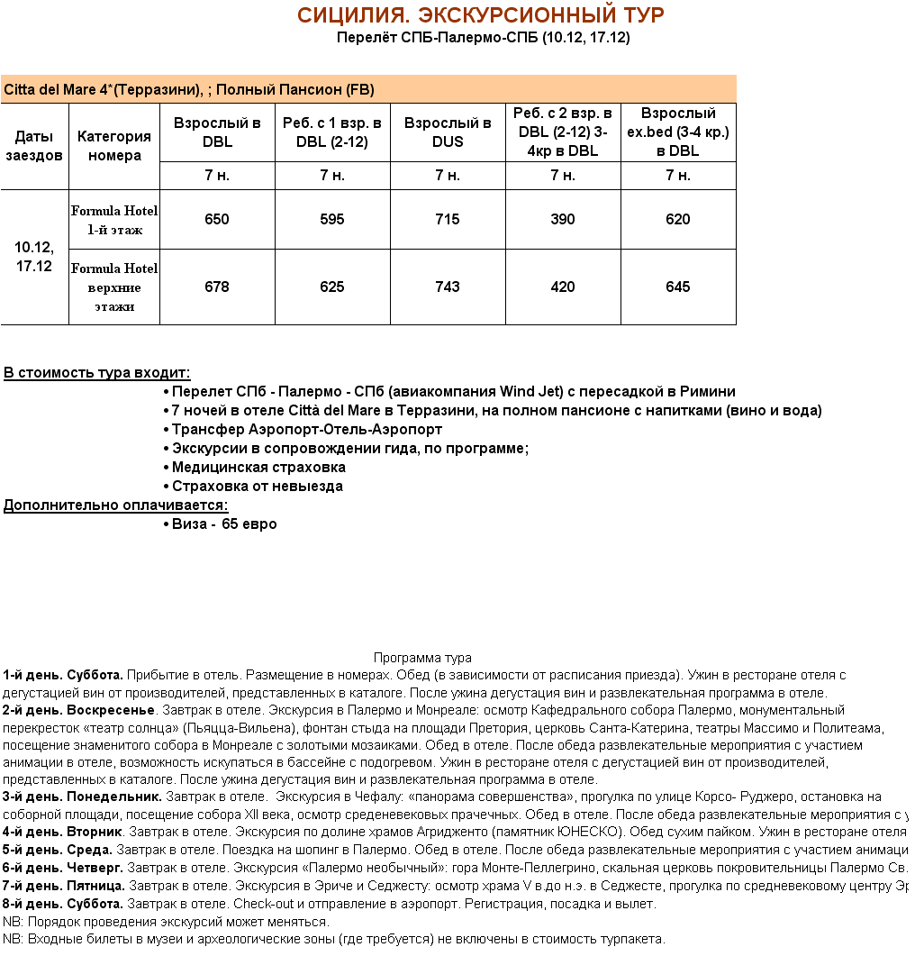 02 Ноя 2011 17:28:37 ИТАЛИЯ - СИЦИЛИЯ 10.12, 17.12 Экскурсии+Отдых от фирмы ПРИМА