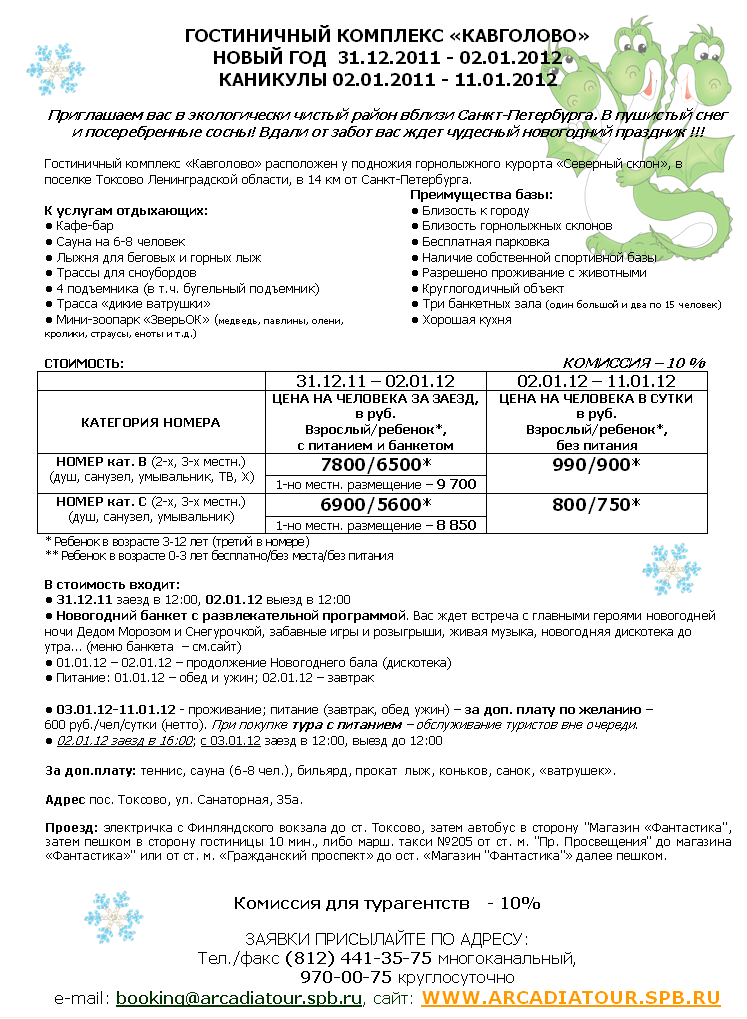 предлагает встретить НОВЫЙ ГОД и провести ЗИМНИЕ КАНИКУЛЫ в