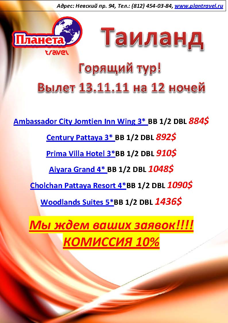 08 Ноя 2011 12:34:58 ТАИЛАНД 13.11 от фирмы ПЛАНЕТА TRAVEL
