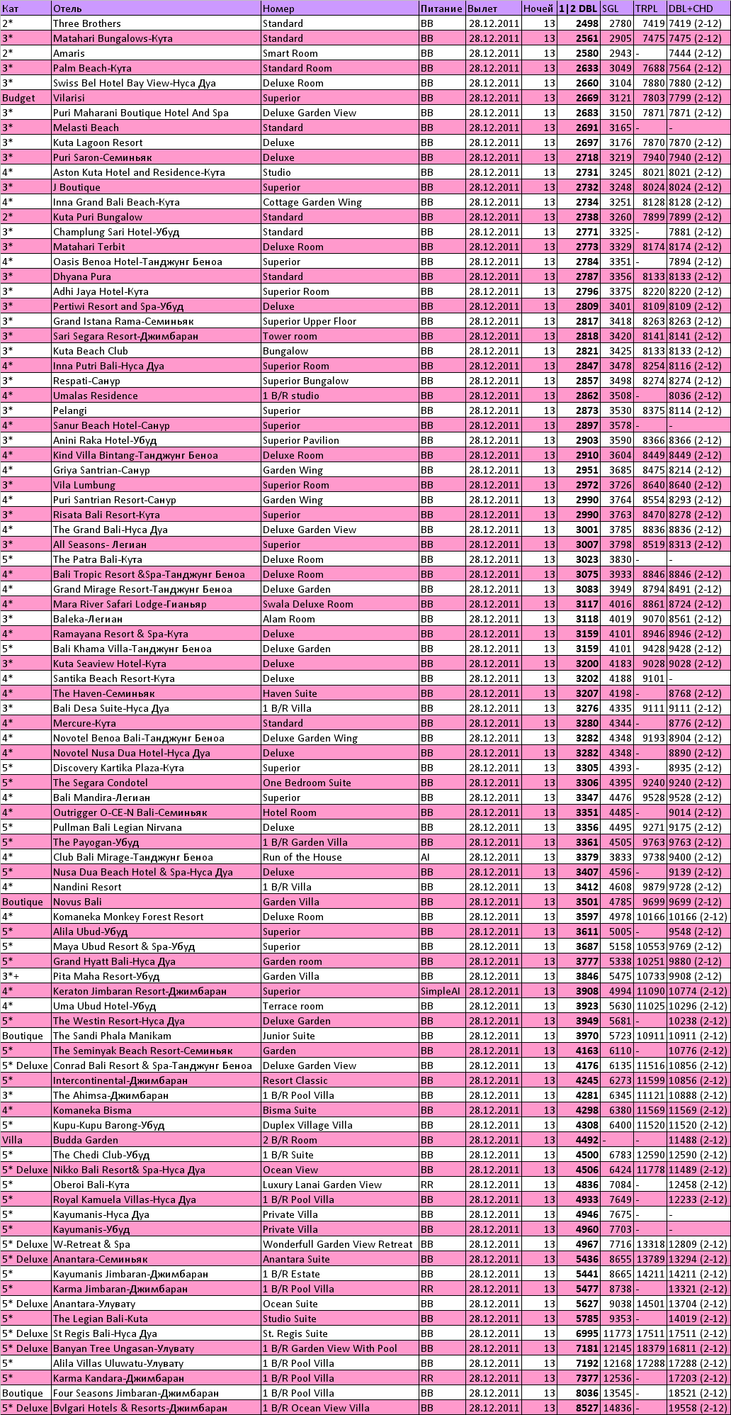о.Бали 28.12.11-10.01.12 Гарантированная группа на Новый год
