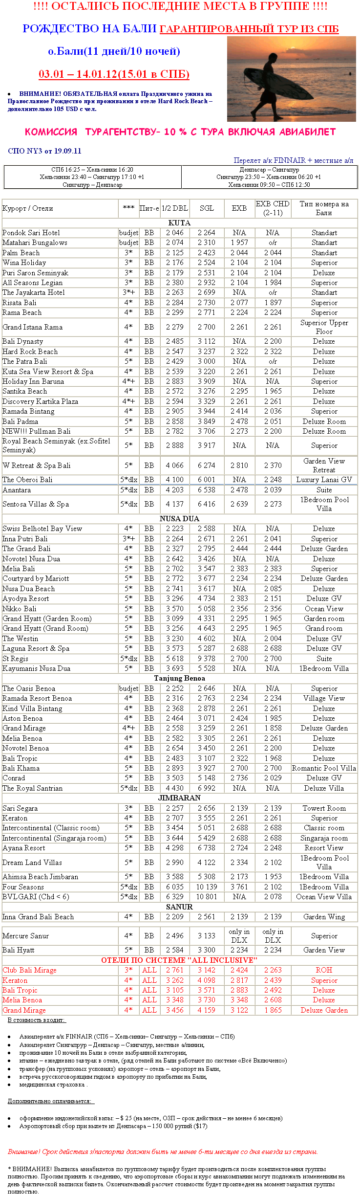 16 Ноя 2011 15:42:32 ИНДОНЕЗИЯ - РОЖДЕСТВО на БАЛИ 03-15.01 от 63 т.р. за тур - из СПб от фирмы ПИТЕРТУР