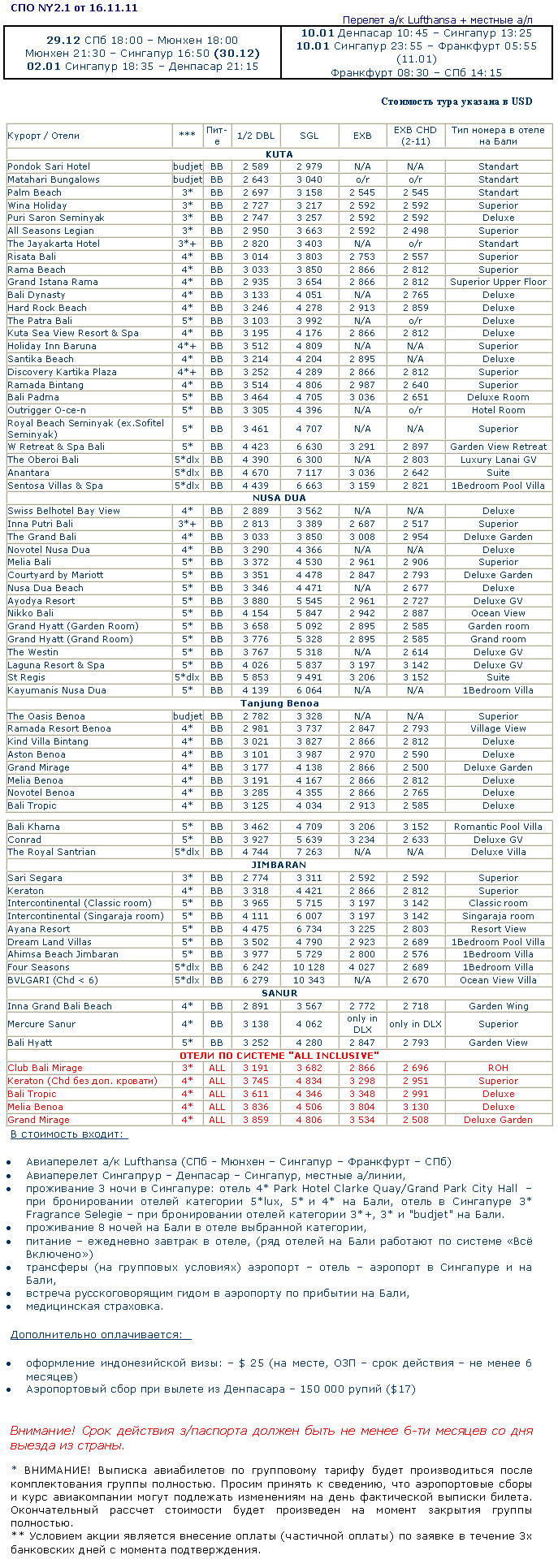 17 Ноя 2011 14:32:55 ИНДОНЕЗИЯ - СИНГАПУР+о.БАЛИ 29.12-11.01 НОВЫЙ ГОД Гарантированный тур из СПБ ПОСЛЕДНИЕ МЕСТА от фирмы ПИТЕРТУР