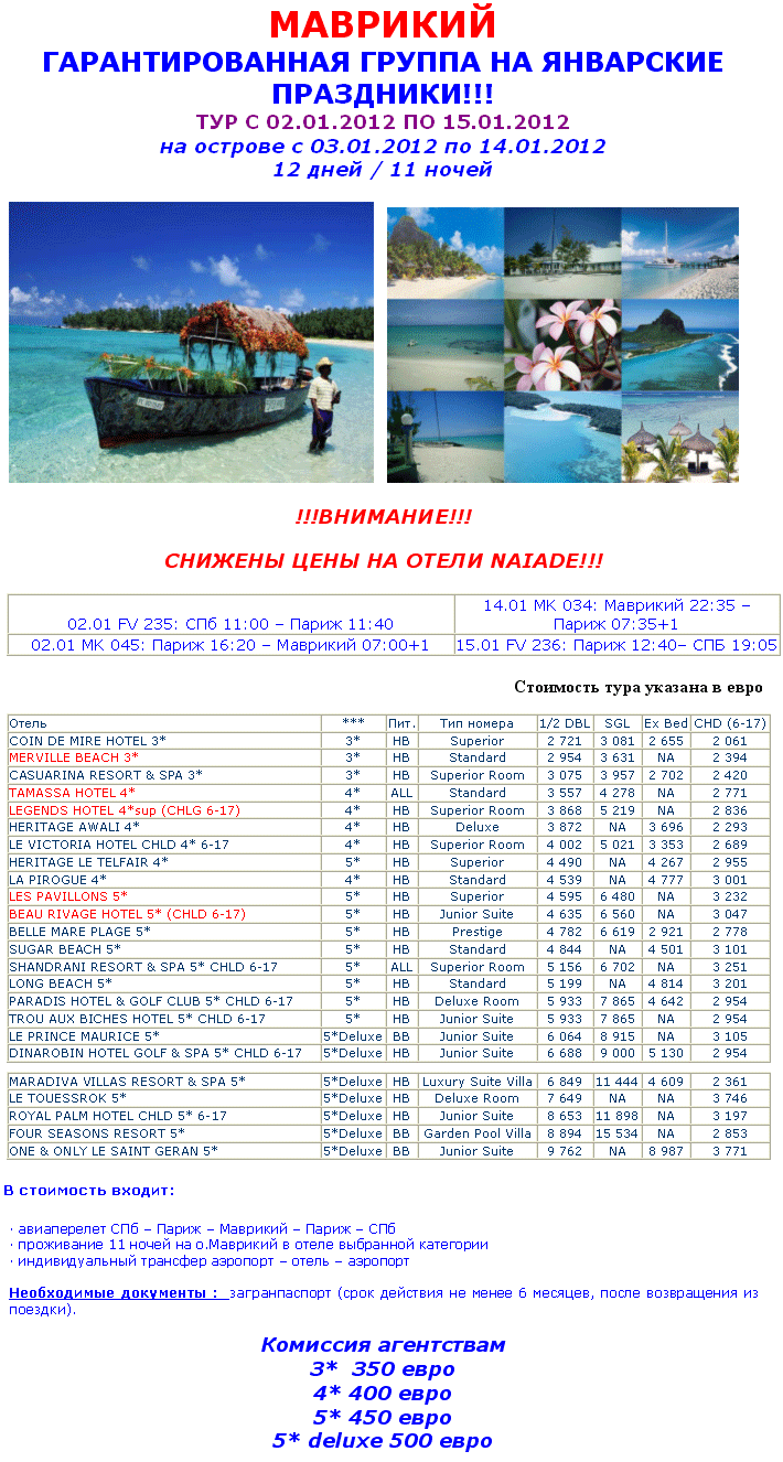 21 Ноя 2011 11:13:06 МАВРИКИЙ на НОВЫЙ ГОД ОТ 117 т.р. от фирмы ПИТЕРТУР