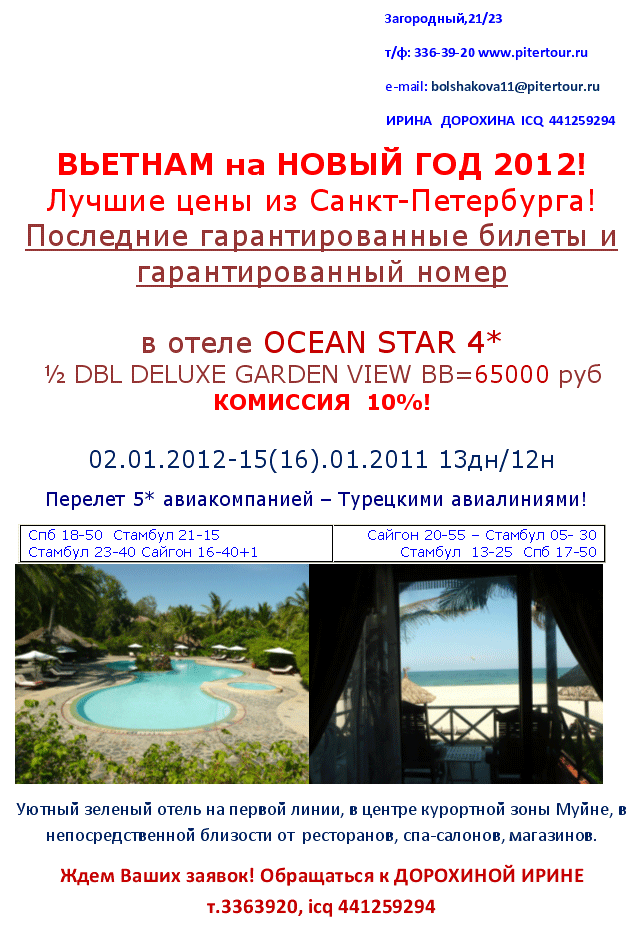 21 Ноя 2011 19:58:06 ВЬЕТНАМ 02.01-15.01 Новый Год 65 000 руб гарантия! от фирмы ПИТЕРТУР