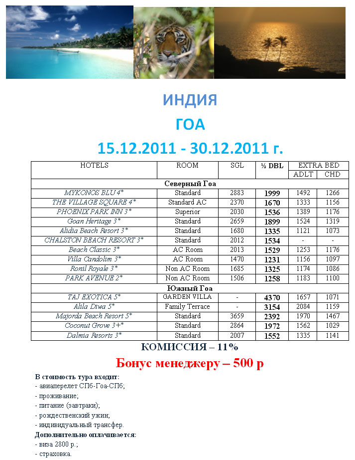 22 Ноя 2011 14:15:36 ИНДИЯ - ГОА 15.12-30.12 от фирмы СЕВЕРНЫЙ ТРОПИК