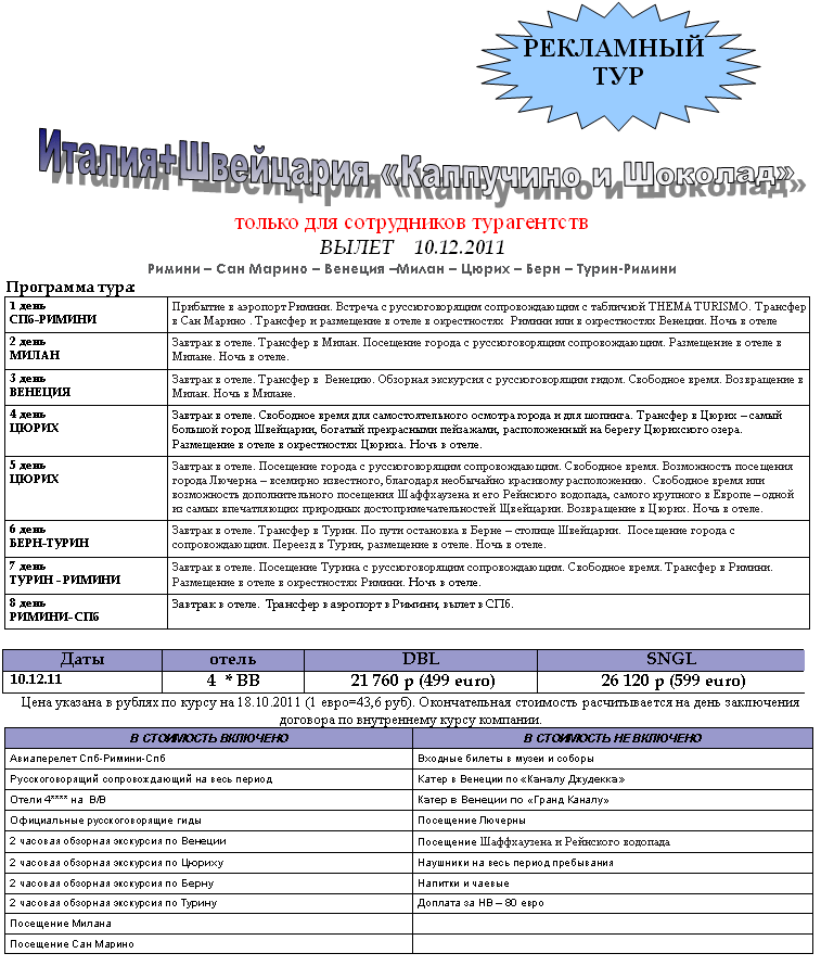 24 Ноя 2011 13:58:40 ИТАЛИЯ-ШВЕЙЦАРИЯ 10.12-17.12 РЕКЛАМНЫЙ ТУР "Капуччно и Шоколад" от фирмы ФЛАМИНГО