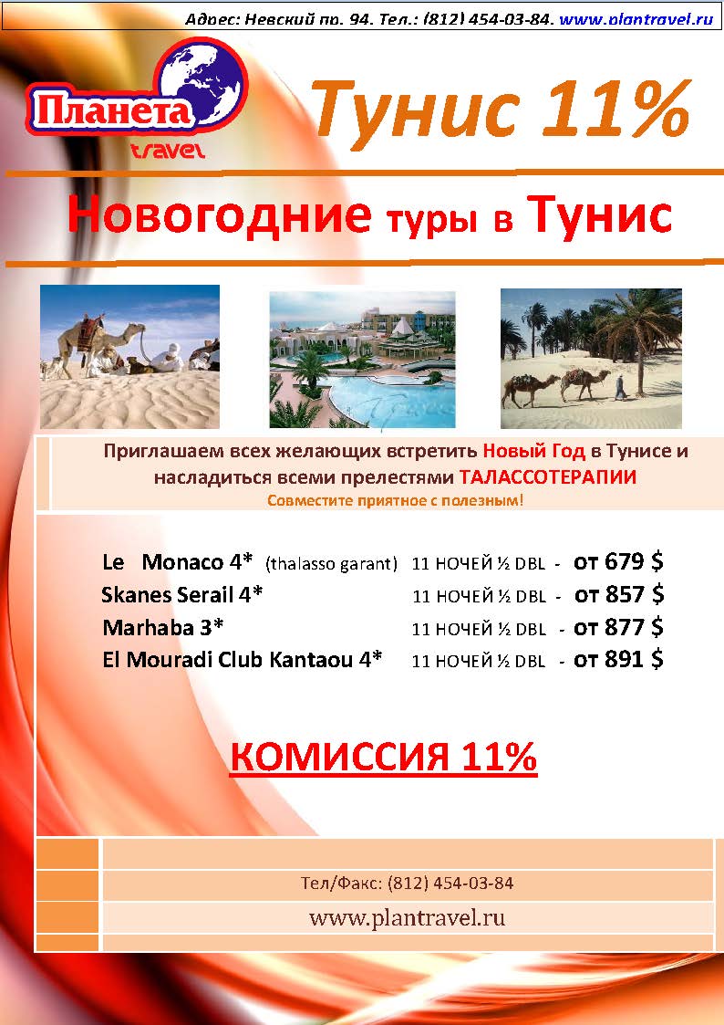 01 Дек 2011 15:43:24 ТУНИС от 679$ на Новый Год! Комиссия 11% от фирмы ПЛАНЕТА TRAVEL