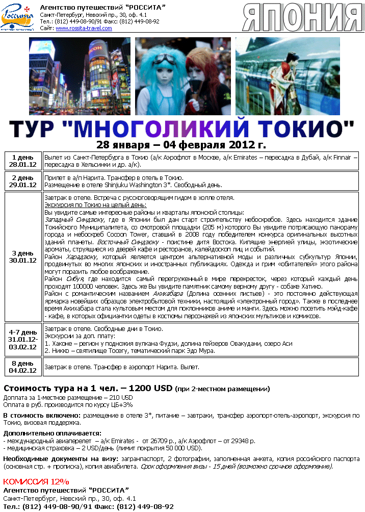 08 Дек 2011 17:35:43 ЯПОНИЯ 24.01-04.02 тур "Многоликий Токио" от фирмы РОССИТА