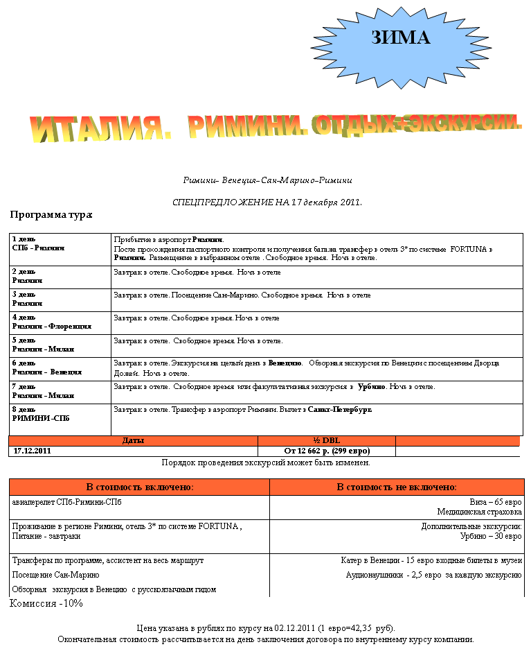 09 Дек 2011 12:38:44 ИТАЛИЯ 17.12 на 8дн Римини-Венеция-Сан Марино-Римини от фирмы ФЛАМИНГО