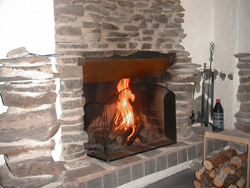 каминный зал. На втором этаже большая гостиная с камином, кухня и лестница
