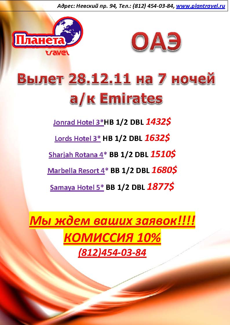14 Дек 2011 13:59:00 ОАЭ из Спб от 1432$ на НГ а/к Emirates Airlines от фирмы ПЛАНЕТА TRAVEL
