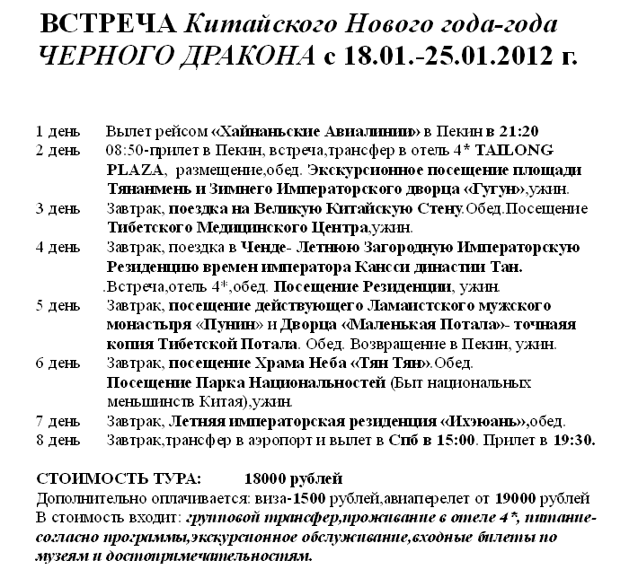 21 Дек 2011 16:25:20 КИТАЙ. Встреча Китайского Нового года 18.01.-25.01.2012 года от фирмы ИВОЛГА