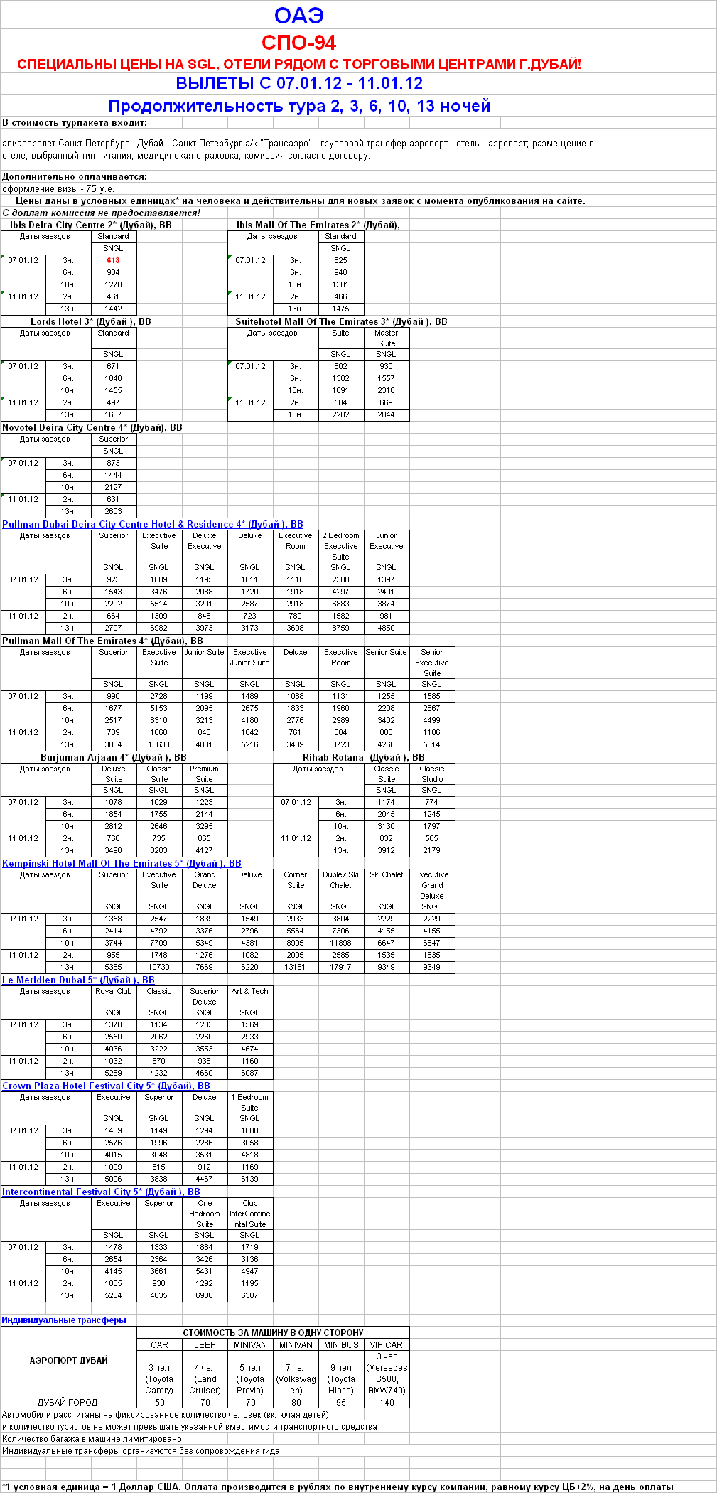 ОАЭ - СПЕЦИАЛЬНЫЕ ЦЕНЫ НА SGL ВЫЛЕТ 07 И 11 ЯНВАРЯ от фирмы ЮЖНЫЙ КРЕСТ |