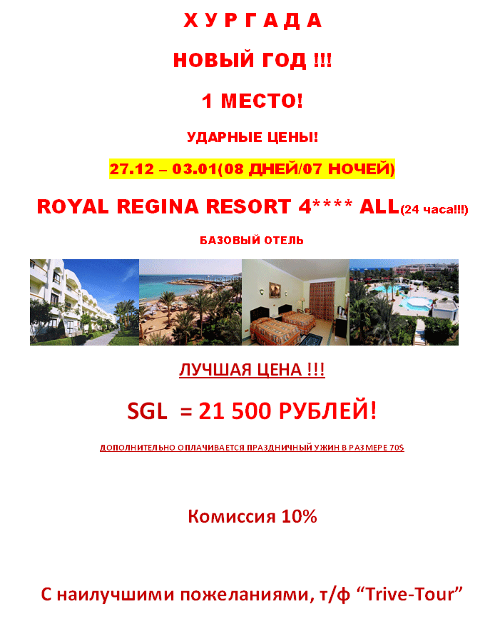 ЕГИПЕТ. ХУРГАДА! НОВЫЙ ГОД! С 27/12 НА 7 НЧ от фирмы TRIVE ТУР |