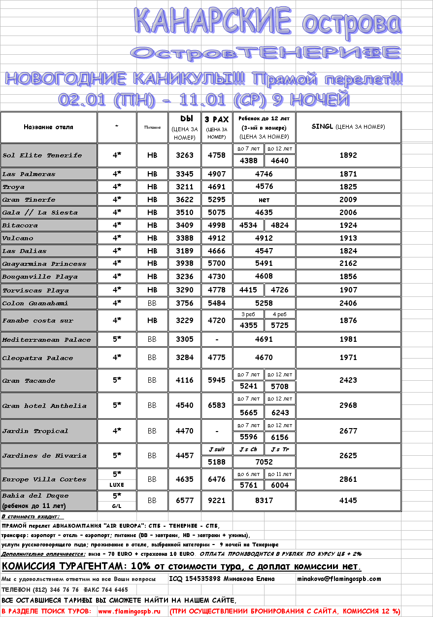26 Дек 2011 13:43:32 ИСПАНИЯ. КАНАРСКИЕ острова - ТЕНЕРИФЕ 02.01 - 11.01 9 НОЧЕЙ от фирмы ФЛАМИНГО