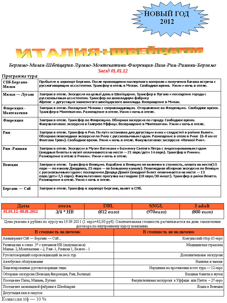 26 Дек 2011 15:28:32 ИТАПИЯ-ШВЕЙЦАРИЯ 01.01-08.01 Новый Год от фирмы ФЛАМИНГО