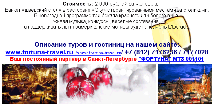 30 Дек 2011 15:22:50 ЭСТОНИЯ - Таллинн - отель Tallink City - Новогодний банкет + программа, последние места по 2000 рублей от фирмы FORTUNA TRAVEL