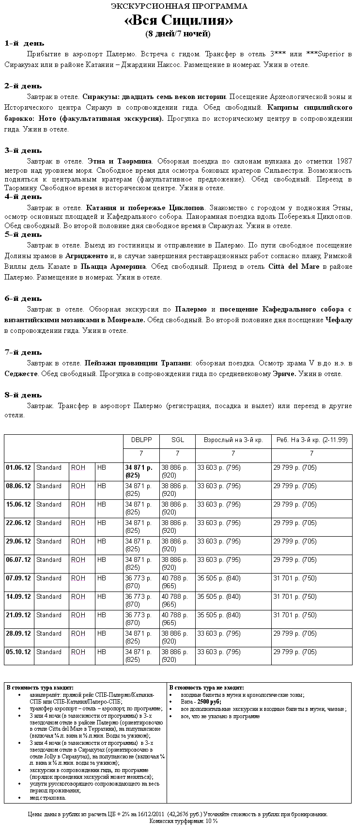 10 Янв 2012 13:25:33 ИТАЛИЯ. NEW! Программа "Вся Сицилия" (8дн/7нн) от 825 у.е. от фирмы АРТ-ТРЕВЕЛ