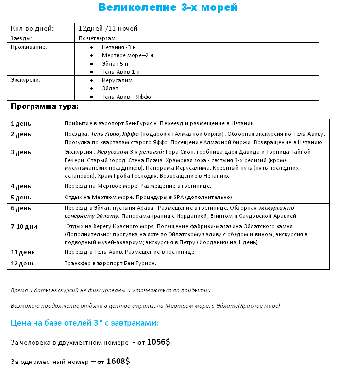 18 Янв 2012 13:25:51 ИЗРАИЛЬ 12дн/11н "Великолепие 3-х морей" от фирмы ITTA